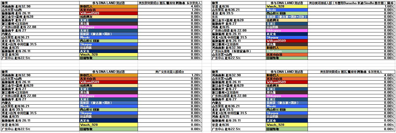 举报该帖子 DNA LAND常染结果的公布2017-09-05· 2976 浏览2 评论 William0509 感谢热心网友的帮助,收集了一些DNA LAND常染的结果,仅供各位网友参考。 2 条评论 热门最新 东北高 2020-03-19顶添加评论点赞 举报该评论 举报该评论 举报类型 违法违规 色情低俗 时政不实信息 引导站外加群 冒充他人 谩骂攻击 网络暴力 其他 无数据 举报描述 举报截图 提交取消评论 东北亚老百姓 2020-03-18支持添加评论点赞 举报该评论 举报该评论 举报类型 违法违规 色情低俗 时政不实信息 引导站外加群 冒充他人 谩骂攻击 网络暴力 其他 无数据 举报描述 举报截图 提交取消评论 图片关联家族你保存和创建的家族 完成关联单倍群 完成提交评论