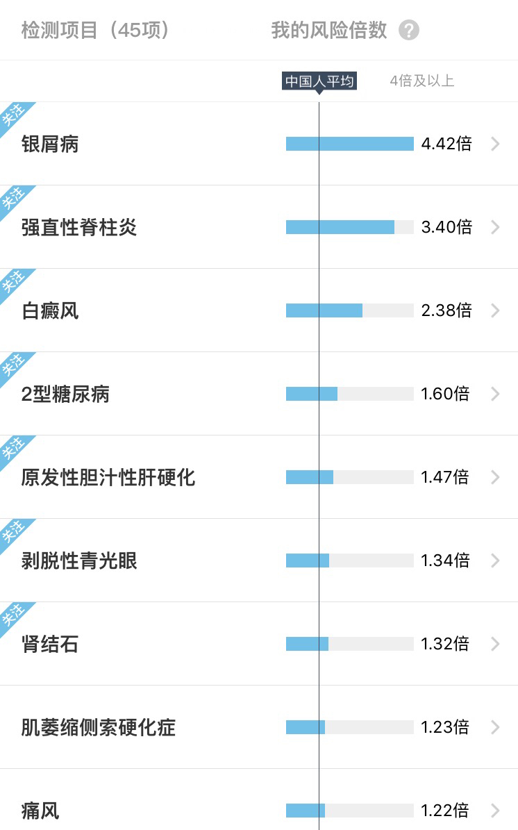 举报该帖子 银屑病和强直!意料之内2017-09-18· 1807 浏览11 评论 Monica。 这个结果还真是有点意料之内… 我爸爸就有银屑病而我自己确诊强直也有四年了 唯一希望我不要得银屑病啊!感觉得了以后可能就穿不了美美哒裙子啦!😂😂😂 11 条评论 热门最新 王大大 PRO2017-09-19亲多观察,有情况赶紧去医院。越早发现越高。平时多加强锻炼,两个病都是和免疫系统有关的2 评论点赞 举报该评论 举报该评论 举报类型 违法违规 色情低俗 时政不实信息 引导站外加群 冒充他人 谩骂攻击 网络暴力 其他 无数据 举报描述 举报截图 提交 Monica。 2017-09-19嗯嗯 谢谢关心!点赞 举报该评论 举报该评论 举报类型 违法违规 色情低俗 时政不实信息 引导站外加群 冒充他人 谩骂攻击 网络暴力 其他 无数据 举报描述 举报截图 提交取消评论93 9370 2018-10-11@Monica。:强直性脊柱炎一般伴随银血病吧点赞 举报该评论 举报该评论 举报类型 违法违规 色情低俗 时政不实信息 引导站外加群 冒充他人 谩骂攻击 网络暴力 其他 无数据 举报描述 举报截图 提交取消评论取消评论 王大大 PRO2017-09-19银屑病有两个高发年龄段15-20岁和40岁-50多岁左右。亲多观察,有情况赶紧去医院,早治疗能够帮助控制。2 评论点赞 举报该评论 举报该评论 举报类型 违法违规 色情低俗 时政不实信息 引导站外加群 冒充他人 谩骂攻击 网络暴力 其他 无数据 举报描述 举报截图 提交 Monica。 2017-09-19好 谢谢😭点赞 举报该评论 举报该评论 举报类型 违法违规 色情低俗 时政不实信息 引导站外加群 冒充他人 谩骂攻击 网络暴力 其他 无数据 举报描述 举报截图 提交取消评论 yy 2017-09-21银屑大于7,现在21岁了 是不是可以稍微松口气了😂点赞 举报该评论 举报该评论 举报类型 违法违规 色情低俗 时政不实信息 引导站外加群 冒充他人 谩骂攻击 网络暴力 其他 无数据 举报描述 举报截图 提交取消评论取消评论 星币国王 2017-09-18从各个用户反馈看来 感觉常染基因检测结果还是挺准的 大规模回撤项目是否通过统计学检验1 评论点赞 举报该评论 举报该评论 举报类型 违法违规 色情低俗 时政不实信息 引导站外加群 冒充他人 谩骂攻击 网络暴力 其他 无数据 举报描述 举报截图 提交 王大大 PRO2017-09-19正在往这个方向不断努力点赞 举报该评论 举报该评论 举报类型 违法违规 色情低俗 时政不实信息 引导站外加群 冒充他人 谩骂攻击 网络暴力 其他 无数据 举报描述 举报截图 提交取消评论取消评论 星币国王 2017-09-182 评论点赞 举报该评论 举报该评论 举报类型 违法违规 色情低俗 时政不实信息 引导站外加群 冒充他人 谩骂攻击 网络暴力 其他 无数据 举报描述 举报截图 提交 Monica。 2017-09-18是哎~很神奇点赞 举报该评论 举报该评论 举报类型 违法违规 色情低俗 时政不实信息 引导站外加群 冒充他人 谩骂攻击 网络暴力 其他 无数据 举报描述 举报截图 提交取消评论 星币国王 2017-09-18@Monica。:咱俩中和一下😂点赞 举报该评论 举报该评论 举报类型 违法违规 色情低俗 时政不实信息 引导站外加群 冒充他人 谩骂攻击 网络暴力 其他 无数据 举报描述 举报截图 提交取消评论取消评论 图片关联家族你保存和创建的家族 完成关联单倍群 完成提交评论
