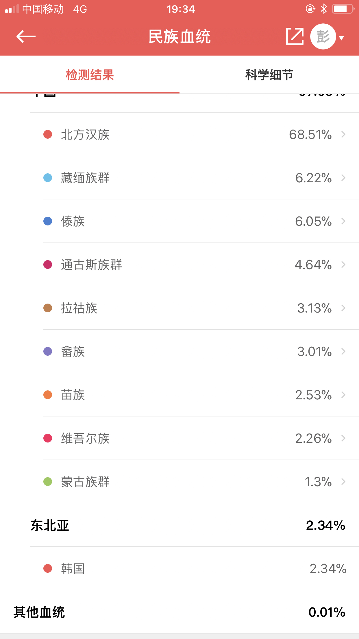 2017-10-19我父母都是北方人 可我居然也有百分之八的藏缅和百分之七傣族血统和百分之八的韩国血统 我也是满族