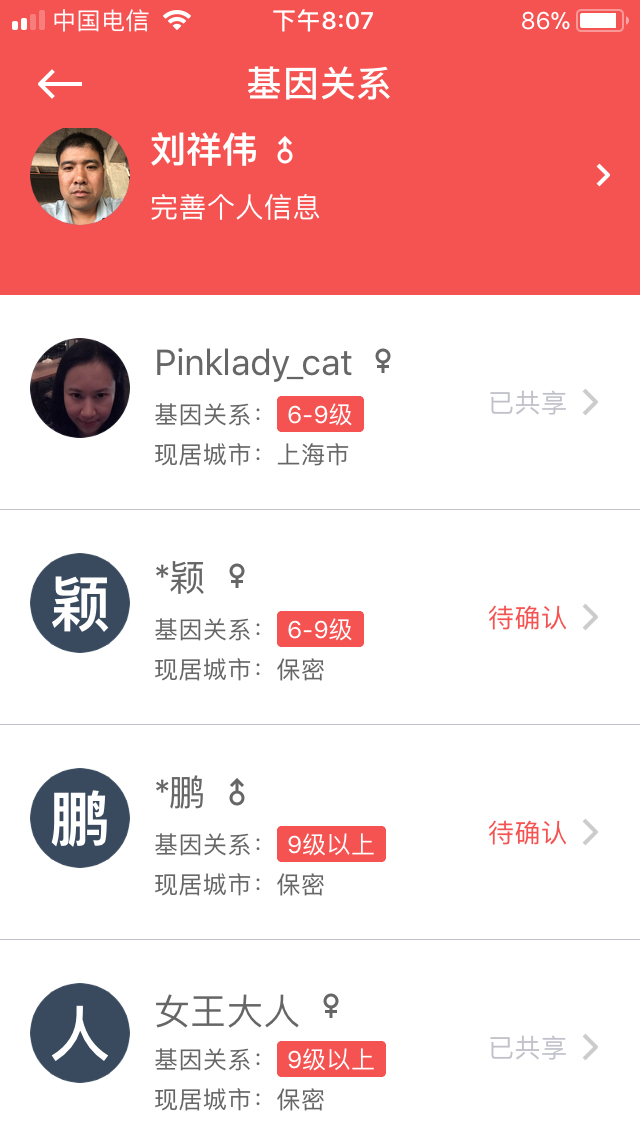 举报该帖子 怎么个情况?????2018-01-25· 1419 浏览3 评论 北海牧羊人 3 条评论 热门最新 北海牧羊人 2018-01-25关于分布图,我是山东的,我舅住东北!!!添加评论1 赞 举报该评论 举报该评论 举报类型 违法违规 色情低俗 时政不实信息 引导站外加群 冒充他人 谩骂攻击 网络暴力 其他 无数据 举报描述 举报截图 提交取消评论 SNPE 2018-01-25刚更新,更新后的版本有添加评论点赞 举报该评论 举报该评论 举报类型 违法违规 色情低俗 时政不实信息 引导站外加群 冒充他人 谩骂攻击 网络暴力 其他 无数据 举报描述 举报截图 提交取消评论 靛蓝心光 2018-01-25我的怎么没有“基因关系分布”这项?添加评论点赞 举报该评论 举报该评论 举报类型 违法违规 色情低俗 时政不实信息 引导站外加群 冒充他人 谩骂攻击 网络暴力 其他 无数据 举报描述 举报截图 提交取消评论 图片关联家族你保存和创建的家族 完成关联单倍群 完成提交评论
