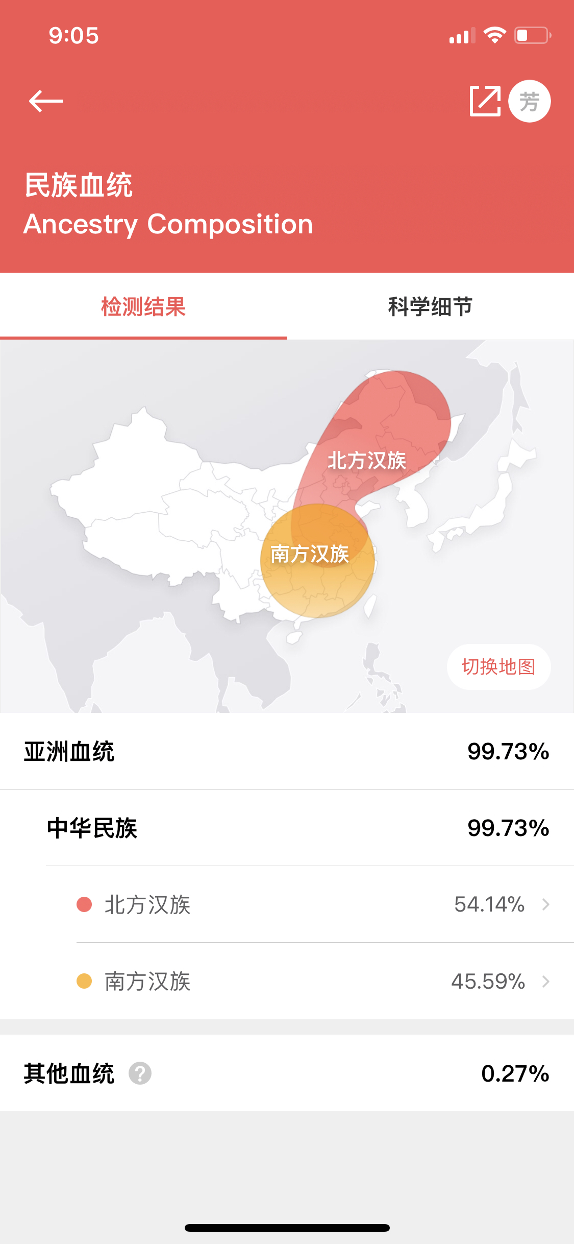 举报该帖子 和母亲的祖源不匹配2018-03-07· 1676 浏览7 评论 薇薇安 第一张是我的 第二张是我母亲的 为什么我没有韩国血统 不科学啊 请休正 7 条评论 热门最新 Raven 2018-03-09我觉得没什么啊!我哥和我妈都没韩国血统,在第一次没改版前我的韩国血统还占4.65%什么的。我觉得问题不大吧,这要看宝宝在娘胎的时候对染色体的选择!添加评论1 赞 举报该评论 举报该评论 举报类型 违法违规 色情低俗 时政不实信息 引导站外加群 冒充他人 谩骂攻击 网络暴力 其他 无数据 举报描述 举报截图 提交取消评论朱鹏 朱鹏 2018-03-08常染有点出入正常 大概比例差不多就行 不能太较真...添加评论1 赞 举报该评论 举报该评论 举报类型 违法违规 色情低俗 时政不实信息 引导站外加群 冒充他人 谩骂攻击 网络暴力 其他 无数据 举报描述 举报截图 提交取消评论 财菜 2018-03-08比例不大,猜测可能是遗传丢了添加评论1 赞 举报该评论 举报该评论 举报类型 违法违规 色情低俗 时政不实信息 引导站外加群 冒充他人 谩骂攻击 网络暴力 其他 无数据 举报描述 举报截图 提交取消评论 [已注销] 2019-03-23遗传添加评论点赞 举报该评论 举报该评论 举报类型 违法违规 色情低俗 时政不实信息 引导站外加群 冒充他人 谩骂攻击 网络暴力 其他 无数据 举报描述 举报截图 提交取消评论 薇薇安 2018-03-08对啊 一个类型添加评论点赞 举报该评论 举报该评论 举报类型 违法违规 色情低俗 时政不实信息 引导站外加群 冒充他人 谩骂攻击 网络暴力 其他 无数据 举报描述 举报截图 提交取消评论朱鹏 朱鹏 2018-03-08mt dna是一个类型吗1 评论点赞 举报该评论 举报该评论 举报类型 违法违规 色情低俗 时政不实信息 引导站外加群 冒充他人 谩骂攻击 网络暴力 其他 无数据 举报描述 举报截图 提交 薇薇安 2018-03-08一个类型点赞 举报该评论 举报该评论 举报类型 违法违规 色情低俗 时政不实信息 引导站外加群 冒充他人 谩骂攻击 网络暴力 其他 无数据 举报描述 举报截图 提交取消评论取消评论 图片关联家族你保存和创建的家族 完成关联单倍群 完成提交评论