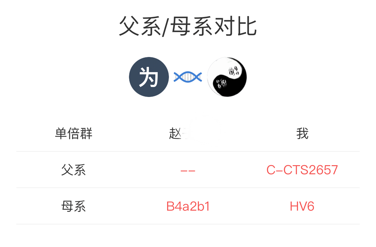 举报该帖子 匹配上基因关系的三个人,母系居然都一样2018-04-09· 2105 浏览14 评论 Mr 張 有三个九级关系跟我开通了共享,都是女性,其中两位都是北京的,还有一位城市保密,忽然发现她们三位母系竟然一模一样,如此巧合? 14 条评论 热门最新 靛蓝心光 2018-04-10外祖母、母亲和女儿呗添加评论1 赞 举报该评论 举报该评论 举报类型 违法违规 色情低俗 时政不实信息 引导站外加群 冒充他人 谩骂攻击 网络暴力 其他 无数据 举报描述 举报截图 提交取消评论朱鹏 朱鹏 2018-04-11你是蘑菇大哥吗5 评论点赞 举报该评论 举报该评论 举报类型 违法违规 色情低俗 时政不实信息 引导站外加群 冒充他人 谩骂攻击 网络暴力 其他 无数据 举报描述 举报截图 提交 Mr 張 2018-04-11啊点赞 举报该评论 举报该评论 举报类型 违法违规 色情低俗 时政不实信息 引导站外加群 冒充他人 谩骂攻击 网络暴力 其他 无数据 举报描述 举报截图 提交取消评论朱鹏 朱鹏 2018-04-11@Mr 張:群里的蘑菇大哥点赞 举报该评论 举报该评论 举报类型 违法违规 色情低俗 时政不实信息 引导站外加群 冒充他人 谩骂攻击 网络暴力 其他 无数据 举报描述 举报截图 提交取消评论取消评论LM Le Moribund 2018-04-10你妈妈姥姥那边的亲戚2 评论点赞 举报该评论 举报该评论 举报类型 违法违规 色情低俗 时政不实信息 引导站外加群 冒充他人 谩骂攻击 网络暴力 其他 无数据 举报描述 举报截图 提交 财菜 2018-04-11有道理点赞 举报该评论 举报该评论 举报类型 违法违规 色情低俗 时政不实信息 引导站外加群 冒充他人 谩骂攻击 网络暴力 其他 无数据 举报描述 举报截图 提交取消评论 Mr 張 2018-04-11@财菜:不可能是我母系那边,她们是B4,我是HV6。点赞 举报该评论 举报该评论 举报类型 违法违规 色情低俗 时政不实信息 引导站外加群 冒充他人 谩骂攻击 网络暴力 其他 无数据 举报描述 举报截图 提交取消评论取消评论 Mr 張 2018-04-10姓刘的、姓王的、姓赵的,难道她们的爸爸都是某家b4a2b1的女婿……1 评论点赞 举报该评论 举报该评论 举报类型 违法违规 色情低俗 时政不实信息 引导站外加群 冒充他人 谩骂攻击 网络暴力 其他 无数据 举报描述 举报截图 提交 楠 2018-04-11biao'q点赞 举报该评论 举报该评论 举报类型 违法违规 色情低俗 时政不实信息 引导站外加群 冒充他人 谩骂攻击 网络暴力 其他 无数据 举报描述 举报截图 提交取消评论取消评论 财菜 2018-04-10你应该匹配上了一家人了添加评论点赞 举报该评论 举报该评论 举报类型 违法违规 色情低俗 时政不实信息 引导站外加群 冒充他人 谩骂攻击 网络暴力 其他 无数据 举报描述 举报截图 提交取消评论 楠 2018-04-09她们亲戚关系添加评论点赞 举报该评论 举报该评论 举报类型 违法违规 色情低俗 时政不实信息 引导站外加群 冒充他人 谩骂攻击 网络暴力 其他 无数据 举报描述 举报截图 提交取消评论 图片关联家族你保存和创建的家族 完成关联单倍群 完成提交评论