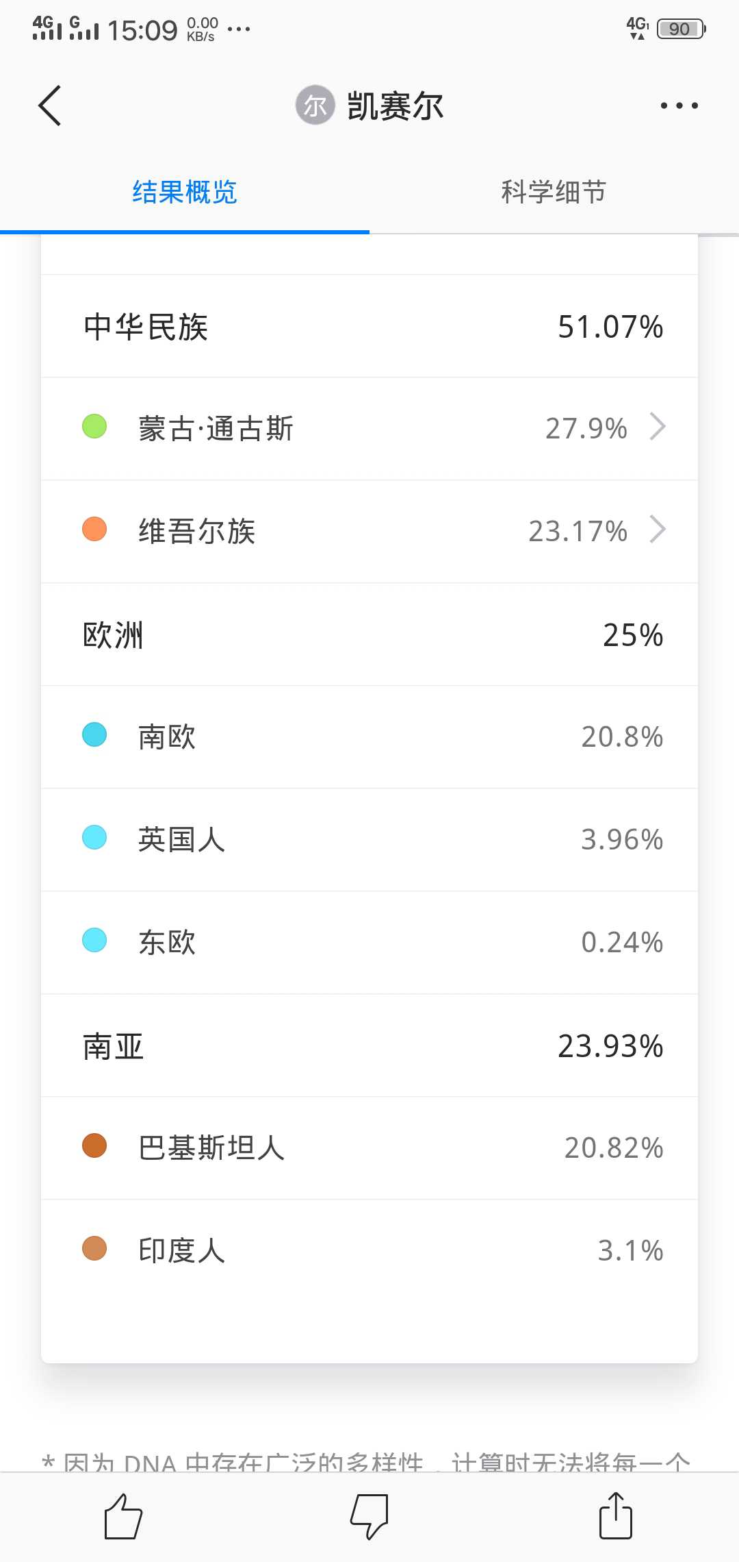 维吾尔,常染血缘是标杆问题。就是魔方以某个维吾尔的人作为维吾尔的标杆,但是怎么定义他就是纯维吾尔血统呢?当然不可能他也会有蒙古族常染,所以比如你和他有60%相同,但是这60%中可能一般都是蒙古族常染,大概就是这么个意思