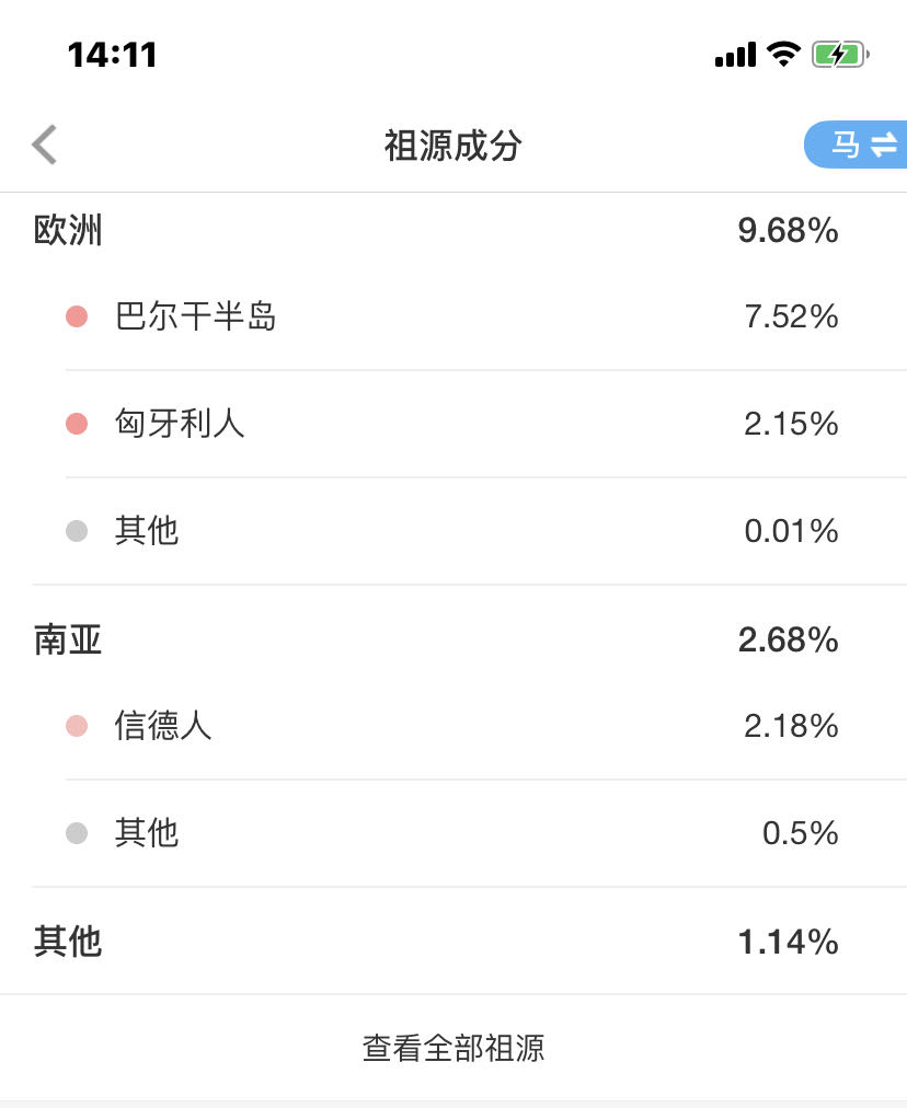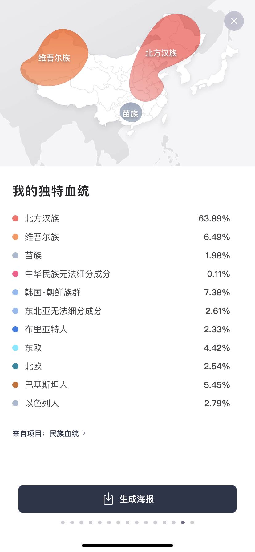 两边的北方汉族有所差异,魔方认定我有64北汉,而微基因上面是50,并且还有16的蒙古,不知道哪个更准确。维吾尔两家基本都一样。魔方我没有南汉,没想到微基因测出来了。还有欧洲,魔方给的不明确,微基因给出了是巴尔干半岛,也就是如今塞尔维亚那边的人。巴基斯坦在魔方略高,实际上信德人百分之二比较准确我觉得。两家总体来看,西欧亚都是18左右。感觉结果应该算是靠谱的了。