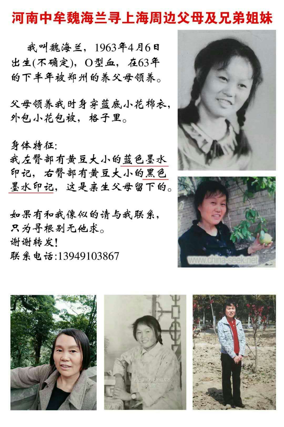寻找家人 大家好,我叫魏海兰,〇型血,通过魔方检测祖源是上海