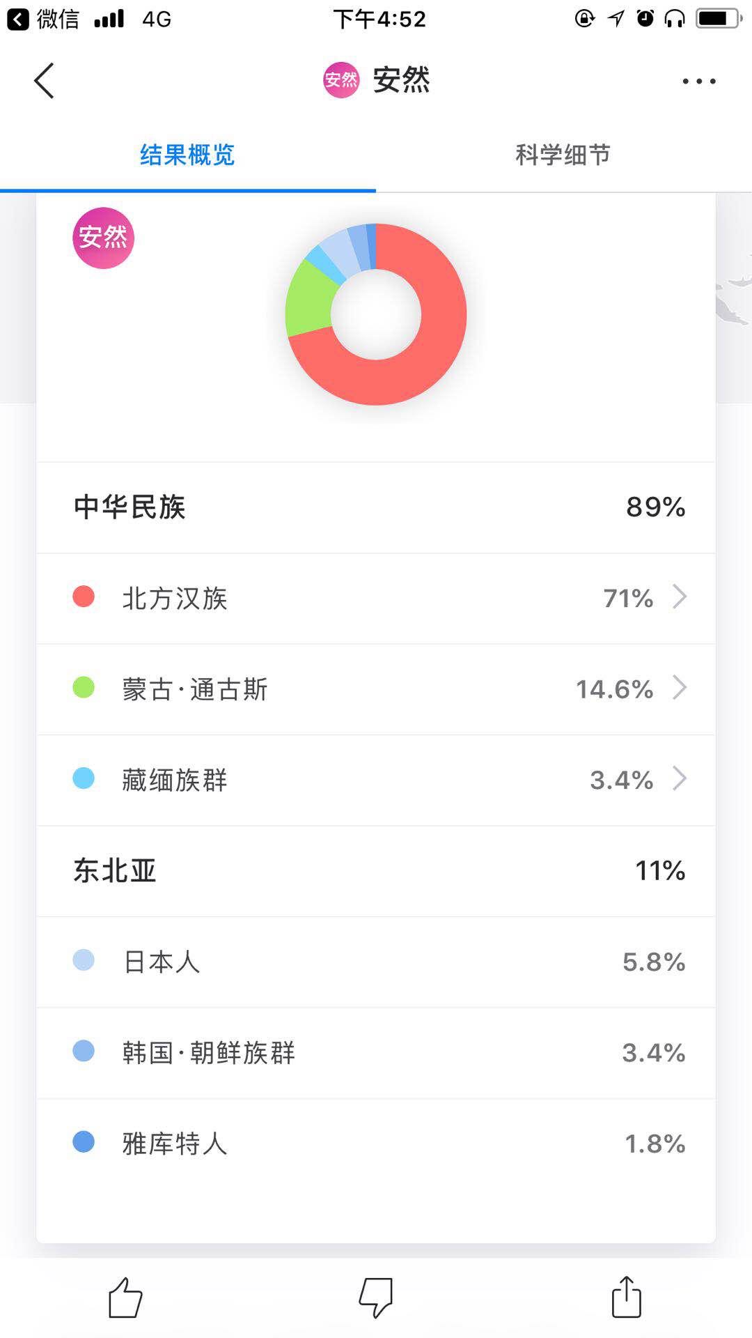 看了祖源分析后,对自己的民族血统深入了解了一番,原来现在的满族是通古斯系民族的分支,而我的通古斯成分很高,说明确实祖上确实是满洲人,排除了改民族的可能。