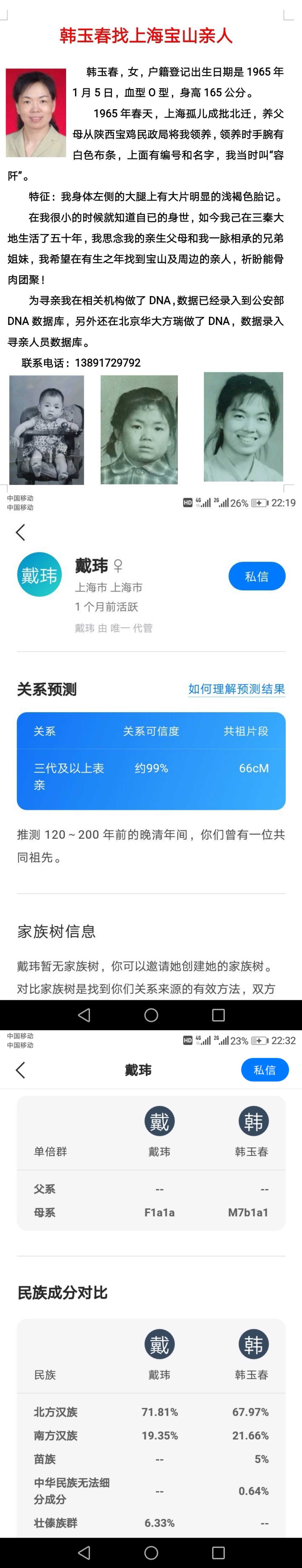 恭喜你找到亲人,可能是父亲那的。让后台服务帮忙联系一下看行不
