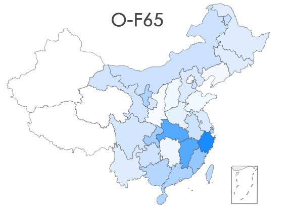 20.(并列)浙赣余氏家族。所在支系 O-F65,共祖年龄 1750 年,全国人口占比 0.2% 左右。该类型高频分布的区域大致在浙江的丽水、衢州,至赣东北的上饶、九江,再到鄂东南的黄冈、黄石一带。约占到该区域总人口的 1%~2% 的比例。其中在浙江(0.77%)、湖北(0.74%)、江西(0.52%)、海南(0.50%)、重庆(0.49%)等省份能占到当地人口的千分之五以上。在福建(0.35%)、广东(0.32%)、广西(0.22%)、上海(0.21%)、吉林(0.21%)、天津(0.2%)、四川(0.18%)等省市能占到当地人口的千分之二以上。此外,在黑龙江、江苏、河北、河南、云南、甘肃、宁夏、内蒙等省市大概有千分之一的分布比例。代表了浙江中心到赣东北地区魏晋以来的历史悠久的家族。