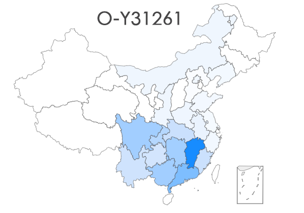 18. 东南黄氏家族。所在支系 O-M1617,共祖年龄 1600 年,全国人口占比 0.21% 左右。该类型主要集中在东南沿海的闽(1.62%)、粤(1.23%)、台(0.88%)、浙(0.69%)、琼(0.4%)五省。此外在川、渝、桂、皖、吉等省也能占到千分之一的比例。代表了福建地区南朝以来的历史悠久的家族。