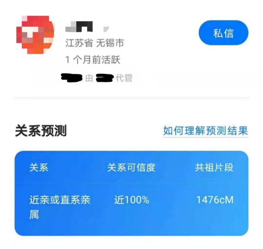 1 月 25 日,检测结果出来了。在寻亲匹配一栏中赫然出现了一位共祖片段长达 1476cM 的近亲!