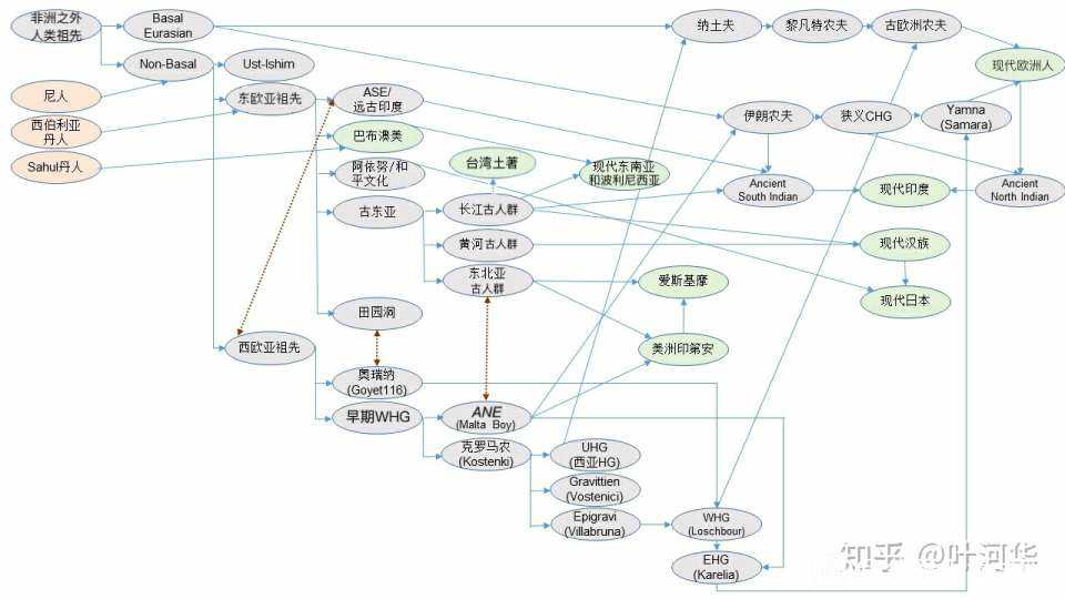 个人认为K2系的起点就是中东地区(作为人类走出非洲的第一站,中东地区的F快速分化出了GHIJK这几个主要人群),而后又在中东分化出了k2a,k2b。(这两支可能就是EE东欧亚常染的源头,当然也有可能早期东欧亚人群包含了GHIJK但是经历遗传漂变后只剩下了k2a k2b)k2a随即北上进入西伯利亚成为北支EE人群,并且极有可能有一分支进入欧洲成为了后来的克罗马农人群,很不幸因为气候环境灾害的原因这支k2a人群并没有存活下来,连对现代欧洲人的常染贡献都没有,直接团灭,其在欧洲留下的空缺被C系I系填补,而C系I系(欧洲c系的那几支应该就是c1a2,c1b)就是后来西欧亚常染的奠基人群。而k2b在与k2a分道扬镳之后进入印度成为当地土著人群(更早的土著应该是D),并且跟D系混合形成了南支EE人群,随即被中东南下的ASE人群(猜测可能是父系单倍群H为主体)挤压到了印度南部并且在此k2b分化出了单倍群P,而后一部分k2b,P进入中南半岛,k2b留下成为现代澳棕常染奠基者,而P系继续北上(我觉得田园洞人很有可能就是北上时还没到西伯利亚的P系),最后进入西伯利亚又与k2a分化出的NO人群相遇并且经历了一次混合(这可能是ane常染中EE的绝大部分源头,这也是ane人群与现代东亚人有一定关联的原因)成为ANS人群,时间点大致在3万7千多年前,而后NO人群从西伯利亚东部进入黄渤海平原并且快速分化出O1,O2,N*(这三支应该就是EA常染人群)。O1a,O1b1在三万年多年前率先南下(有一部分o1b人群没有南下而是留在黄渤海平原,这支应该就是后面的o1b2-p49),O2次之,而N系则停留在黄渤海平原-远东地区并且因为气候寒冷经历了相当长的瓶颈期(N系应该是辽西土著,而且N系应该就是在这分化出了n1a,n1b。部分n1b随即也南下,而停留在辽西的n1a,n1b则共同发展出了红山文化)。O1,O2因为南下的比较早在气候温暖的地带资源丰富且后期发展出了农业人**发快成为现代东亚人群常染(EAS)的奠基者。现在让我们回到P系,P系北上后分化出QR与西欧亚常染人群遭遇混合形成了ANE常染人群(ANE常染人群父系最开始应该是比较多样的,然而经历了遗传漂变后只剩下了QR),ANE为主体的Q又与EA人群混合成为现代西伯利亚土著和美洲常染的奠基者,而R在东欧形成EHG,一部分ANE常染的R又与中东basaleurasian混合形成CHG,EHG与CHG继续混合形成原始印欧人并与西欧农夫构成现代欧洲人。这应该就是k2系人群迁徙分化的大致脉络。