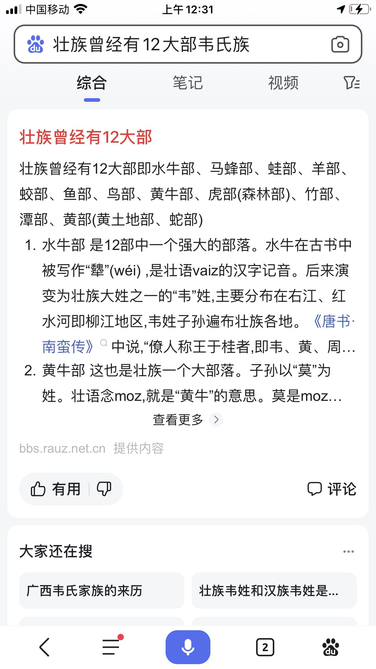 更可笑的是广西壮韦姓,本来源于壮族Veis“水牛部”的音译,到了他这里就变成了豕韦氏,即使他们跟汉族韦没有任何关系,他们一开始还认韩信为祖先,后来又认豕韦