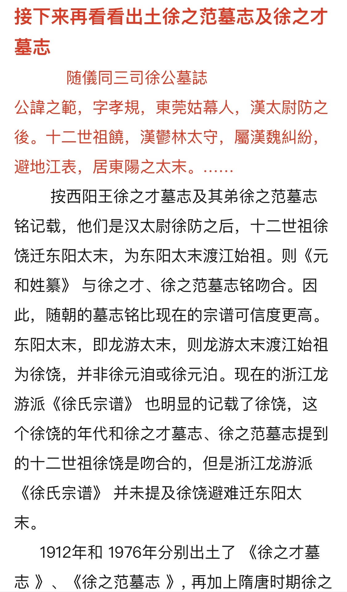 徐之范墓志铭点名道姓了说衢州龙游徐氏是他们的分支,这就相当于西周天子墓里挖出来青铜器上面刻了金文:“姬周王族是N-F1998一个道理了。”