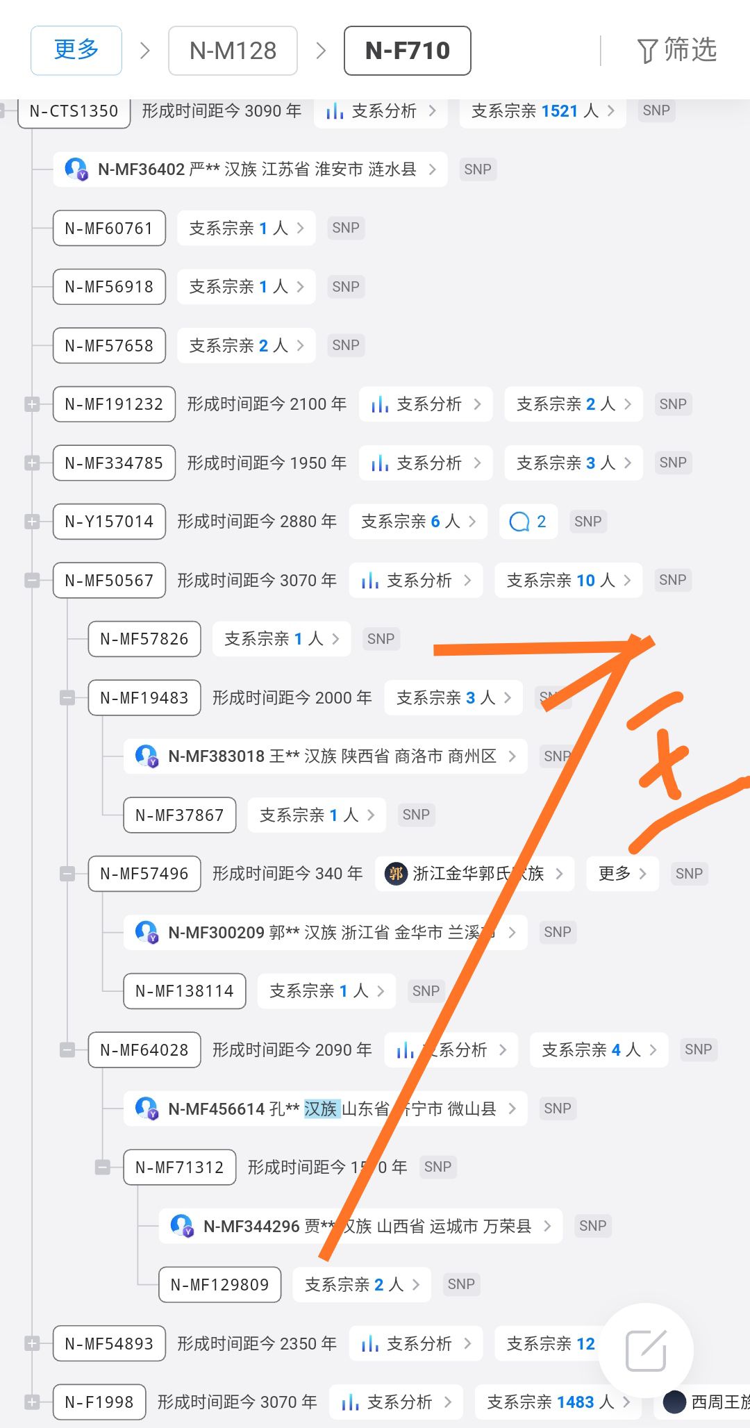 这是姬周的哪个王?MF50567是1350下第三大支,其下四支的三个早期支都姓王,10个人中6个姓王,估计50567姓王吧?商洛、洛阳、郑州的都姓王,其它的不姓王,运城一个也隔不远。参考第二大支12人杂姓,应该可以认为N-MF50567姓王。