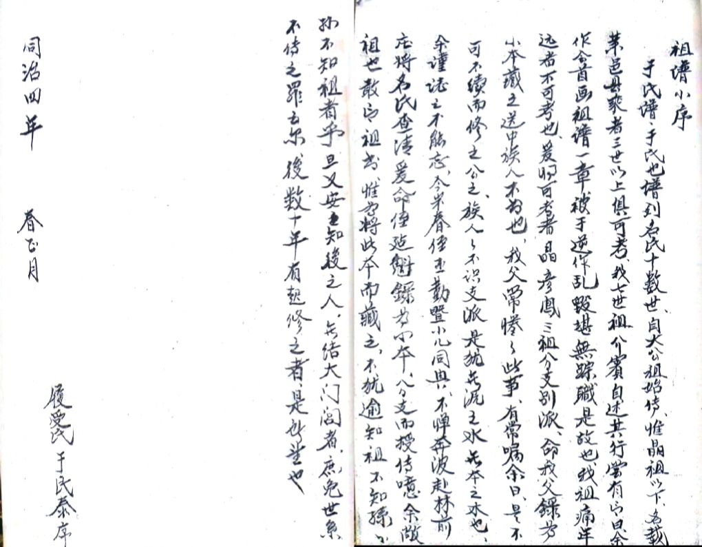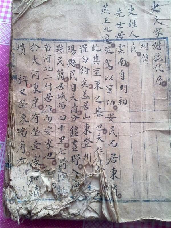 9、样本(9)来自海阳齐沟崖村史姓。树上两个样本为父子样本,谱书见下图。