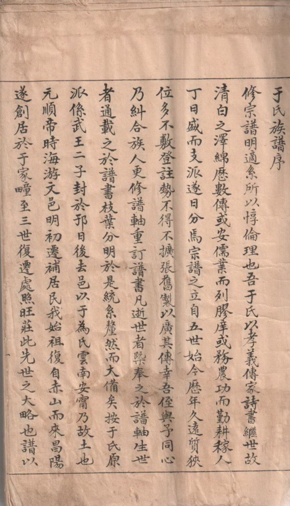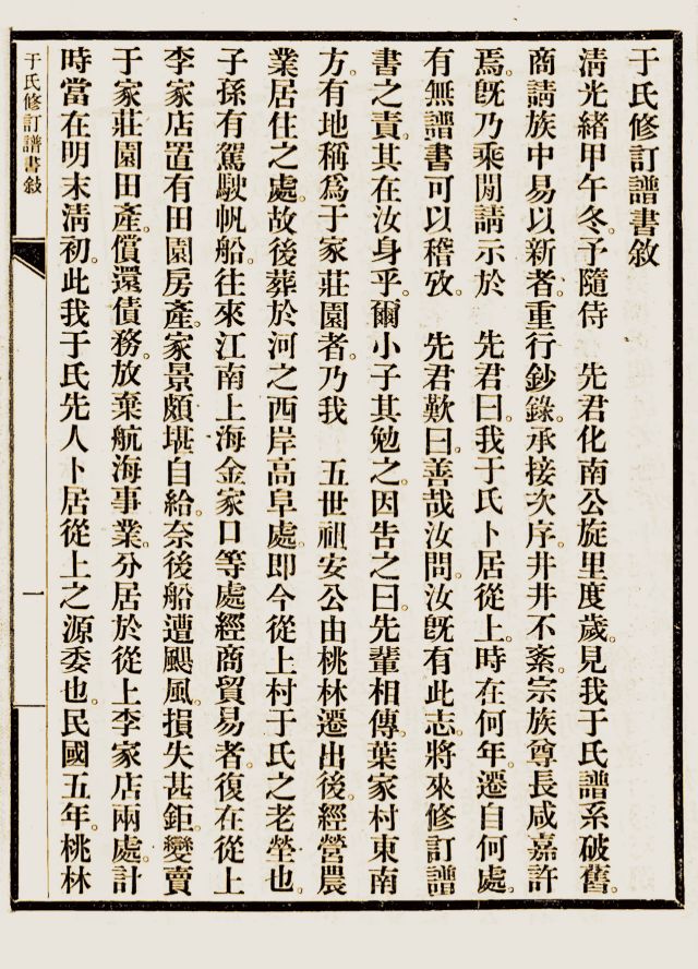 1、样本(1)来自海阳桃林村于姓,改村始祖于守泽。样本为四世桐公派后裔。