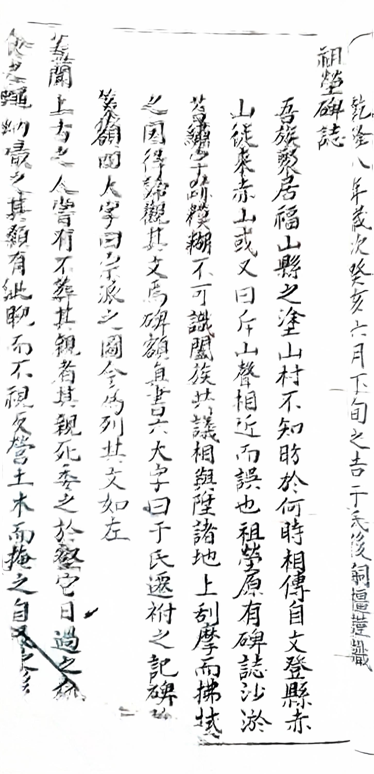13、样本(13)福山南涂山,按此村元大德十年碑载远祖于迪,金代进士,此村以于才广为一世。