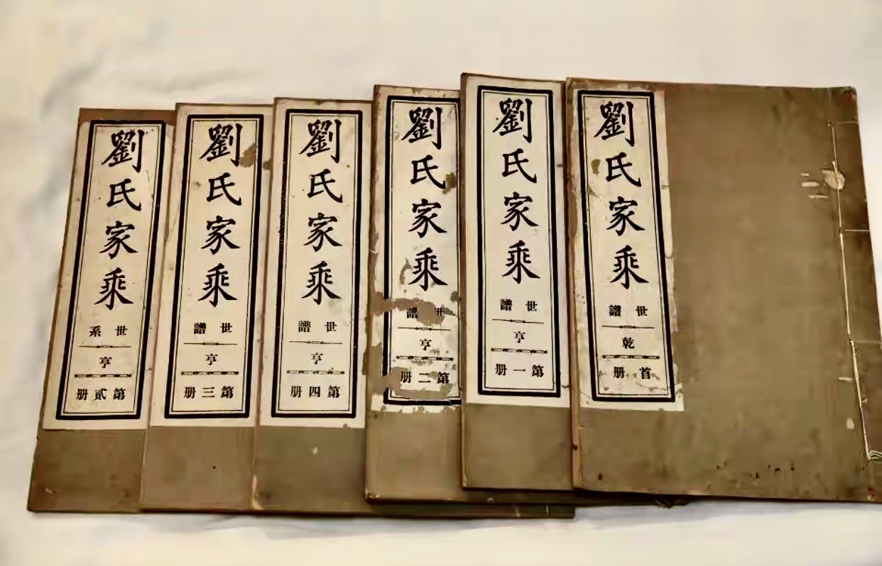 7,刘子实家族刘暹之后刘全明、刘旻之后刘衍胜提供的明万历首修《刘氏家乘》民国七年续修本。(《刘氏家乘》“前序”与“世纪”、“吾刘氏族源流考”、“刘姓不必认汉祖辩”、“世谱与世系中的十二房与老四房”、“乾元亨利贞五字部的相关谱记”等。)
