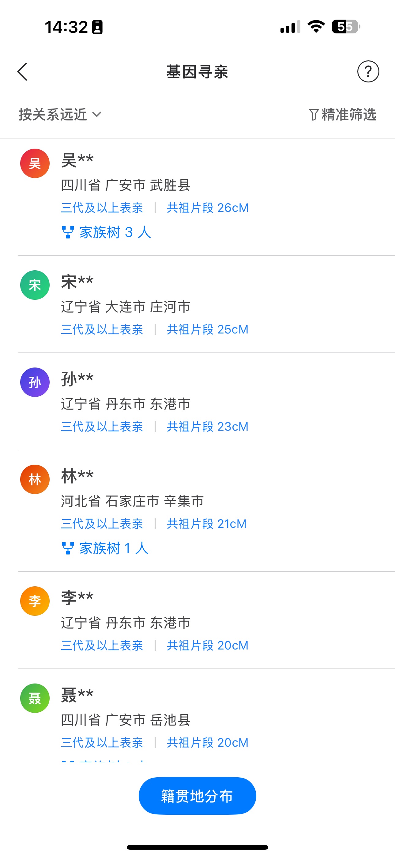 举报该帖子 寻姥姥姥爷的亲人11-29· 121 浏览0 评论月月 戴月月 五代表亲遍天下,就是没有和我母系基因相同的,是不是说明我姥姥家没啥亲人在了,想找姥爷姥姥的亲人应该给我姥姥做一个,姥爷不在了 图片关联家族你保存和创建的家族 完成关联单倍群 完成提交评论