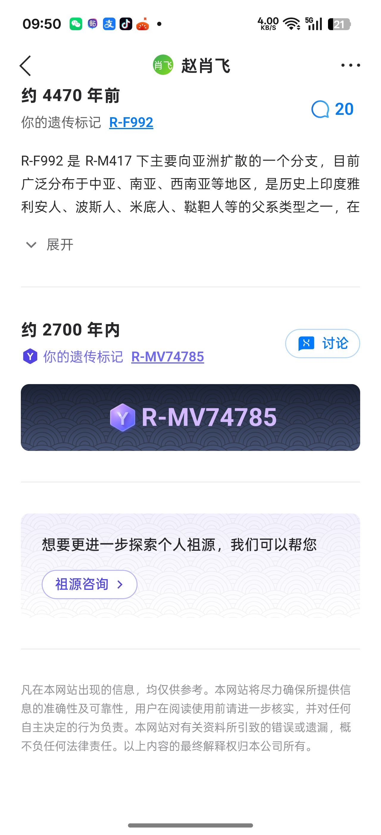 举报该帖子 这是不是表示 我高通了个寂寞今天 02:19· 113 浏览3 评论 赵 3 条评论 热门最新 西门山人 今天 03:06高通后的共祖时间是实时的,因为会不断有新的高通样本出来。添加评论1 赞 举报该评论 举报该评论 举报类型 违法违规 色情低俗 时政不实信息 引导站外加群 冒充他人 谩骂攻击 网络暴力 其他 无数据 举报描述 举报截图 提交取消评论 振鸿 今天 02:54R开头的,全国约有1200万男性!添加评论点赞 举报该评论 举报该评论 举报类型 违法违规 色情低俗 时政不实信息 引导站外加群 冒充他人 谩骂攻击 网络暴力 其他 无数据 举报描述 举报截图 提交取消评论 斌 今天 02:41你是不是之前加过祖源树q群?添加评论点赞 举报该评论 举报该评论 举报类型 违法违规 色情低俗 时政不实信息 引导站外加群 冒充他人 谩骂攻击 网络暴力 其他 无数据 举报描述 举报截图 提交取消评论 图片关联家族你保存和创建的家族 完成关联单倍群 完成提交评论