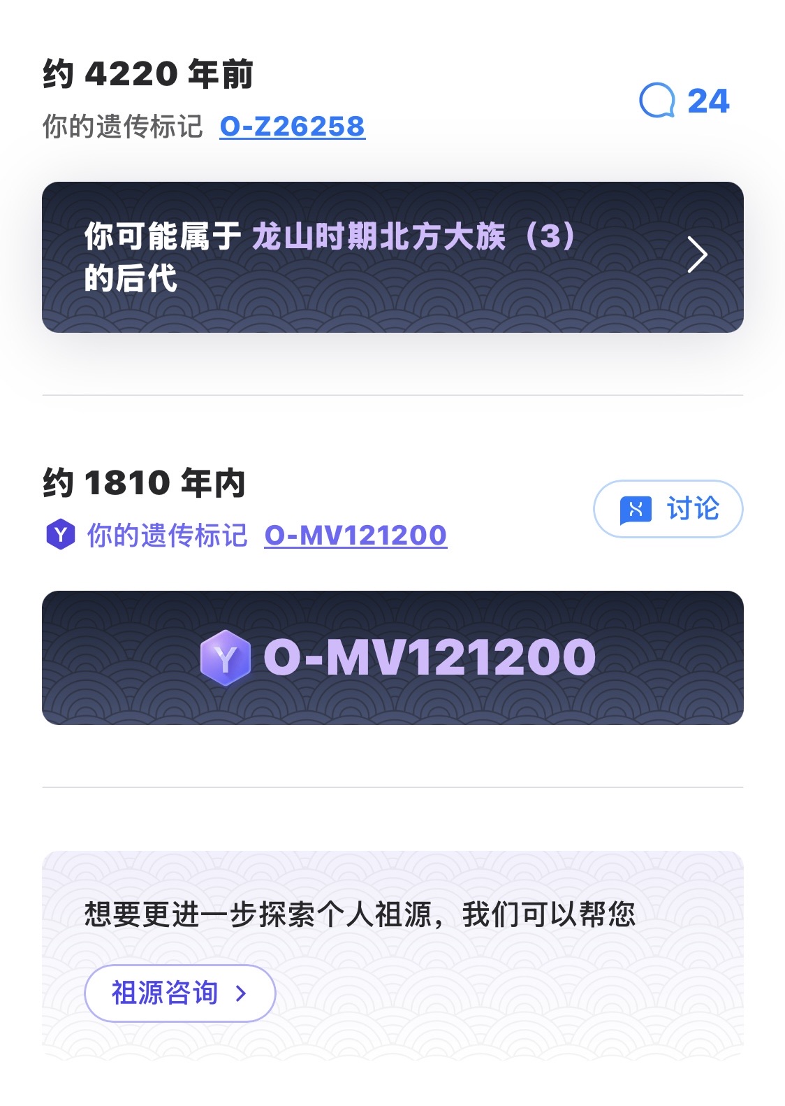 举报该帖子 龍山北方大族再添一位後裔2025-12-27· 257 浏览0 评论 景初 关联 1 个家族龙山时期北方大族(3)关联 1 个单倍群O-Z26258 图片关联家族你保存和创建的家族 完成关联单倍群 完成提交评论