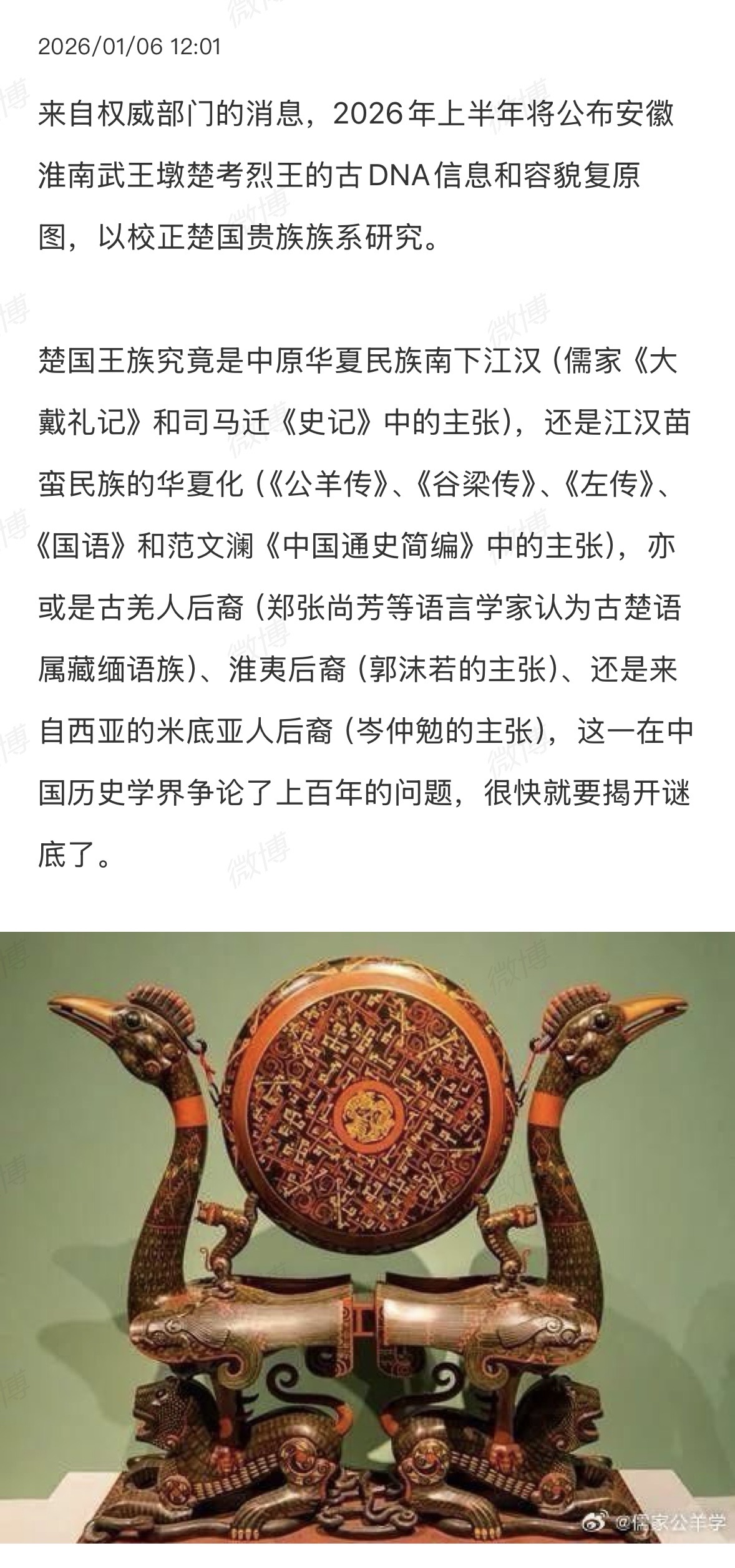 来自权威部门的消息,2026年上半年将公布楚考烈王的古DNA信息