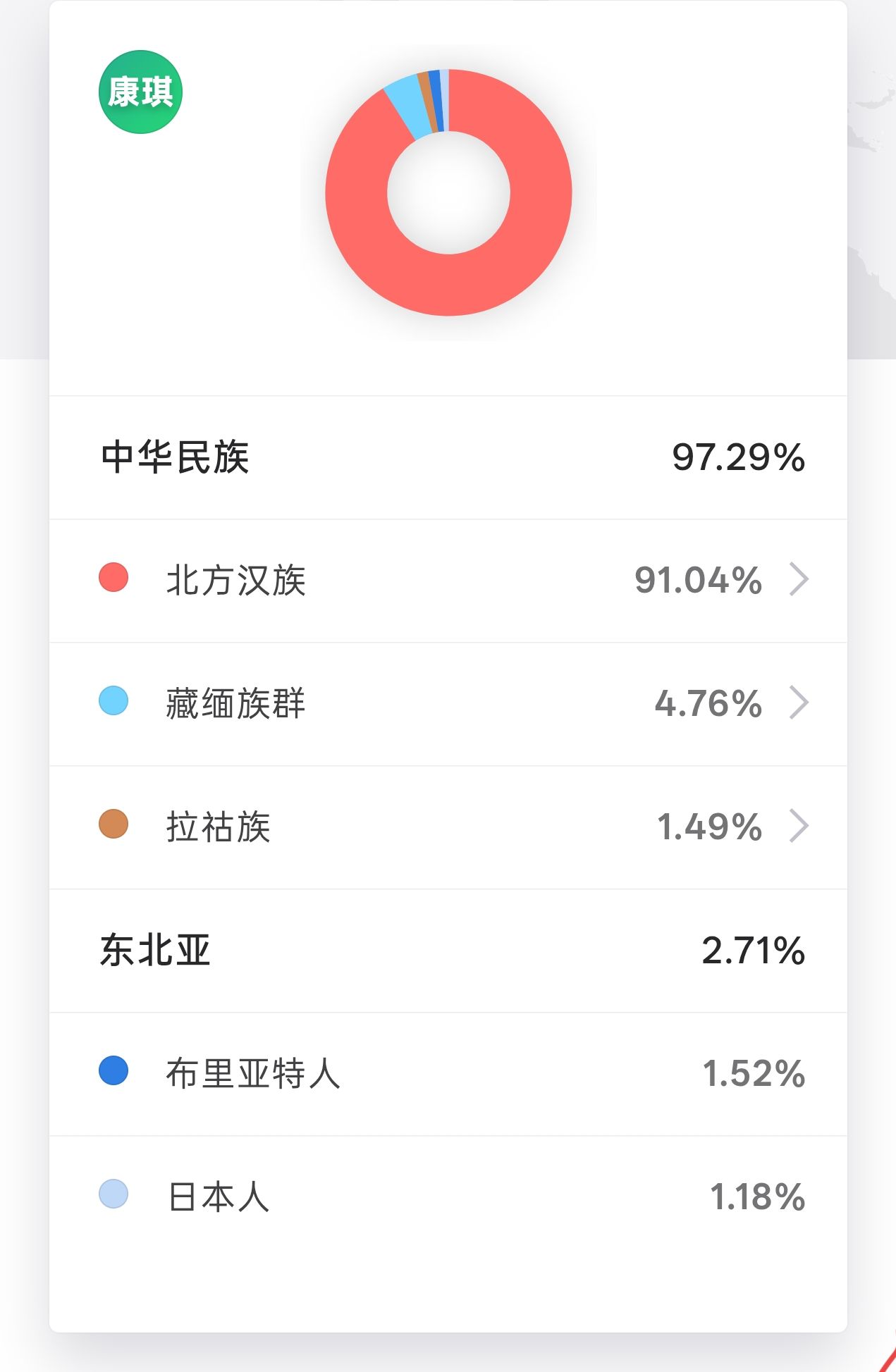 举报该帖子 91%的北方汉族前天 04:37· 221 浏览3 评论 岂曰无依 不是很懂这个,90%占比的北方汉族意味着什么?为啥还有拉枯族和日本人这俩一南一北的基因? 3 条评论 热门最新 用户0305_flymt 昨天 02:53就是91%的身体特征跟长期生活在北方的汉族人类似添加评论点赞 举报该评论 举报该评论 举报类型 违法违规 色情低俗 时政不实信息 引导站外加群 冒充他人 谩骂攻击 网络暴力 其他 无数据 举报描述 举报截图 提交取消评论 前朝故人 前天 06:05其实就是91的山东北汉 东夷北汉1 评论点赞 举报该评论 举报该评论 举报类型 违法违规 色情低俗 时政不实信息 引导站外加群 冒充他人 谩骂攻击 网络暴力 其他 无数据 举报描述 举报截图 提交 岂曰无依 前天 08:51噢噢,是汉人就行点赞 举报该评论 举报该评论 举报类型 违法违规 色情低俗 时政不实信息 引导站外加群 冒充他人 谩骂攻击 网络暴力 其他 无数据 举报描述 举报截图 提交取消评论取消评论 图片关联家族你保存和创建的家族 完成关联单倍群 完成提交评论