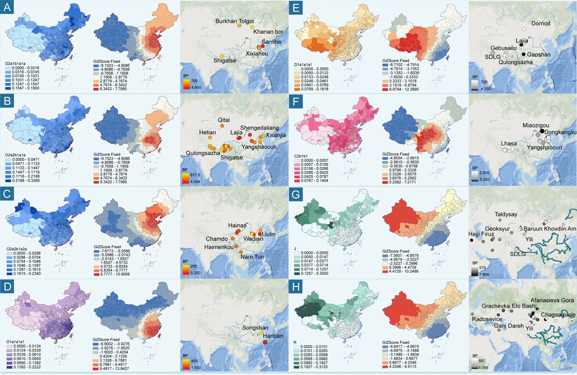 起源时间:O2a1b1a1a起源于约14000年前,O2a2b1a2a起源于约13000年前,内部分支扩张分别发生在9000年前、8000年前,与黄河流域粟作农业驯化、发展的时间完全同步;