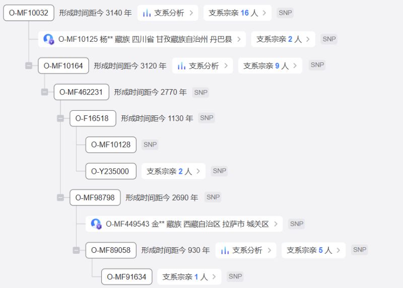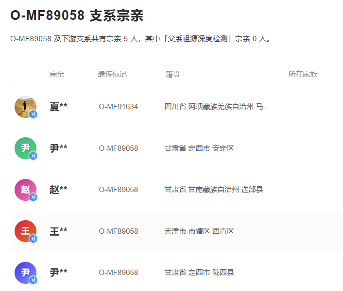 疑似唃厮啰赞普家族支系上目前下沉样本五人,共祖在北宋,其中马尔康样本夏多泽让据称家族出自悉补野赞普具体谱系未详,迭部杨姓藏族为赵醇忠后裔岷州赵土司家族入赘卓尼杨土司家族,定西尹姓样本为瞎毡、木征家族留在榆中的后裔,天津样本可能和元代临洮赵氏加入元军为达鲁花赤驻扎华北有关,目前仍有大量样本在上游未下沉,赞普家族生物学后代可能比想象中多。