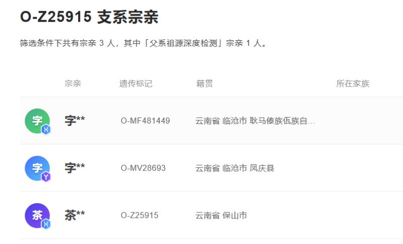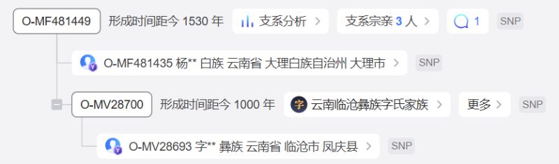 已测试的茶土司后代和彝族字氏均位于藏缅大支O-Z25915下游,细化后的彝族字氏簇与一例大理白族杨共祖于O-MF481449,共祖时间大约1500年前,和蒙舍诏的兴起及前舍龙族部落进入大理地区时间较为吻合,但因缺少彝族左氏样本和茶氏样本细化,故只能暂时推定字氏细化后同白族杨共祖的上游支系O-MF481449高度疑似为南诏王族。